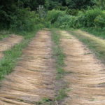 2025年8月14日 / 最終更新日時 : 2025年8月15日 amane 亜麻畑 収穫 夕方涼しくなった時間に少しずつ収穫しました。種を取った茎を草の上に並べて野晒しにしています。今回は水に浸して発酵させるやり方ではなく、大半を野晒方法で繊維を採りたいと思います。